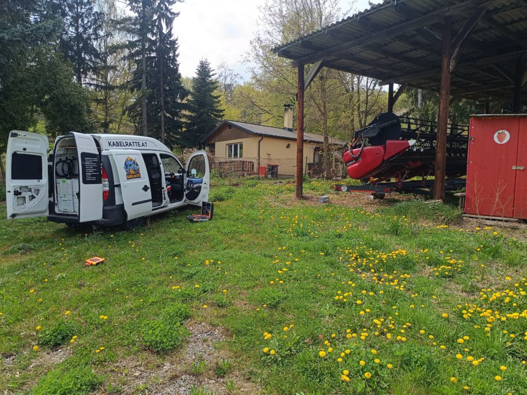 Die Rede war von „ein paar“ – im Endeffekt waren es 16 Fahrzeuge und Geräte an welchen die Verkabelung oder Stecker oder Beleuchtungseinrichtungen getauscht und repariert werden mussten. Das wurde einfach direkt vor Ort erledigt um unnötige Stehzeiten und Anfahrten zu realisieren. Unser Fiat Doblo wurde kurzerhand zu einer mobilen Werkstatt umgerüstet.